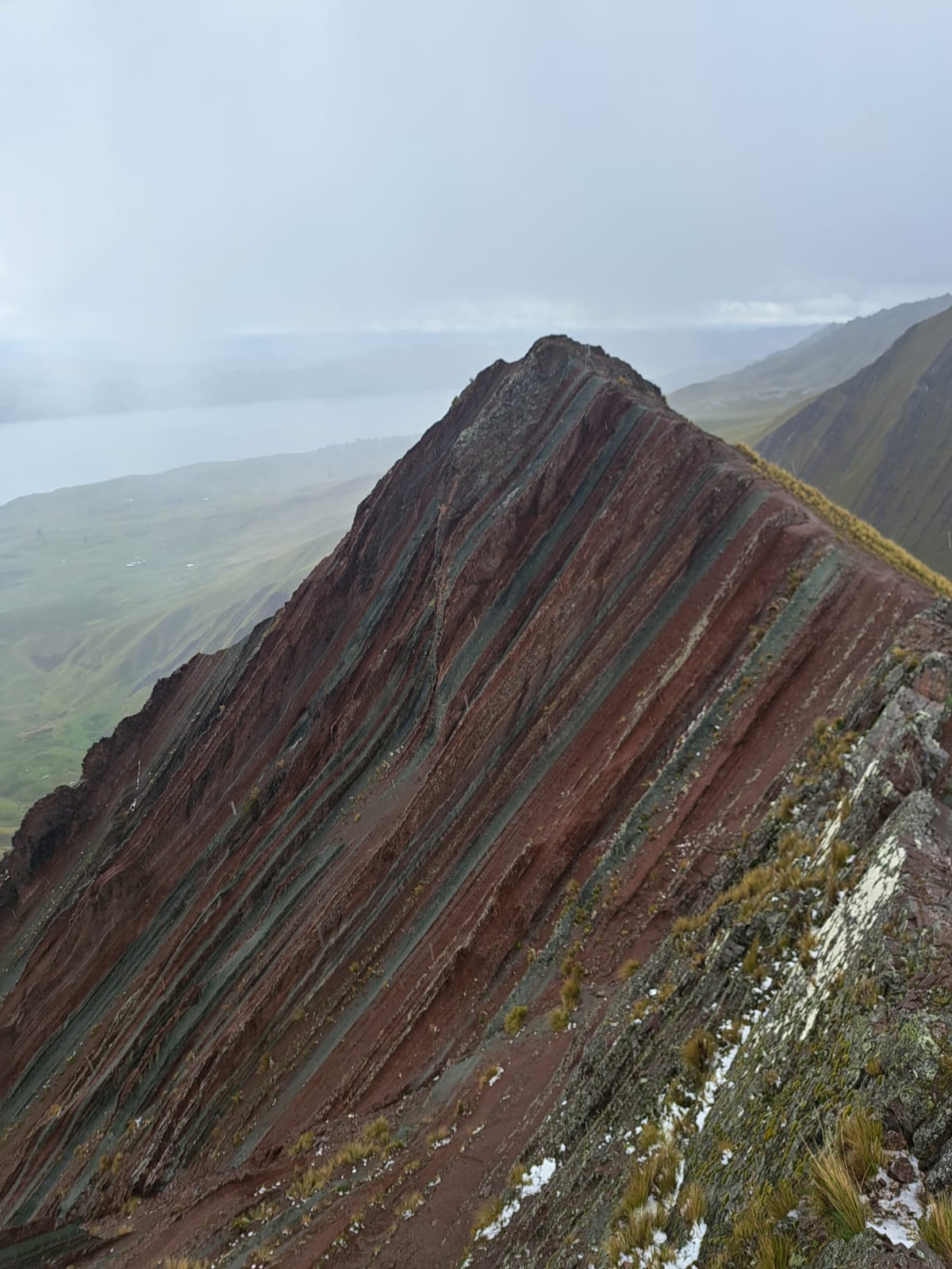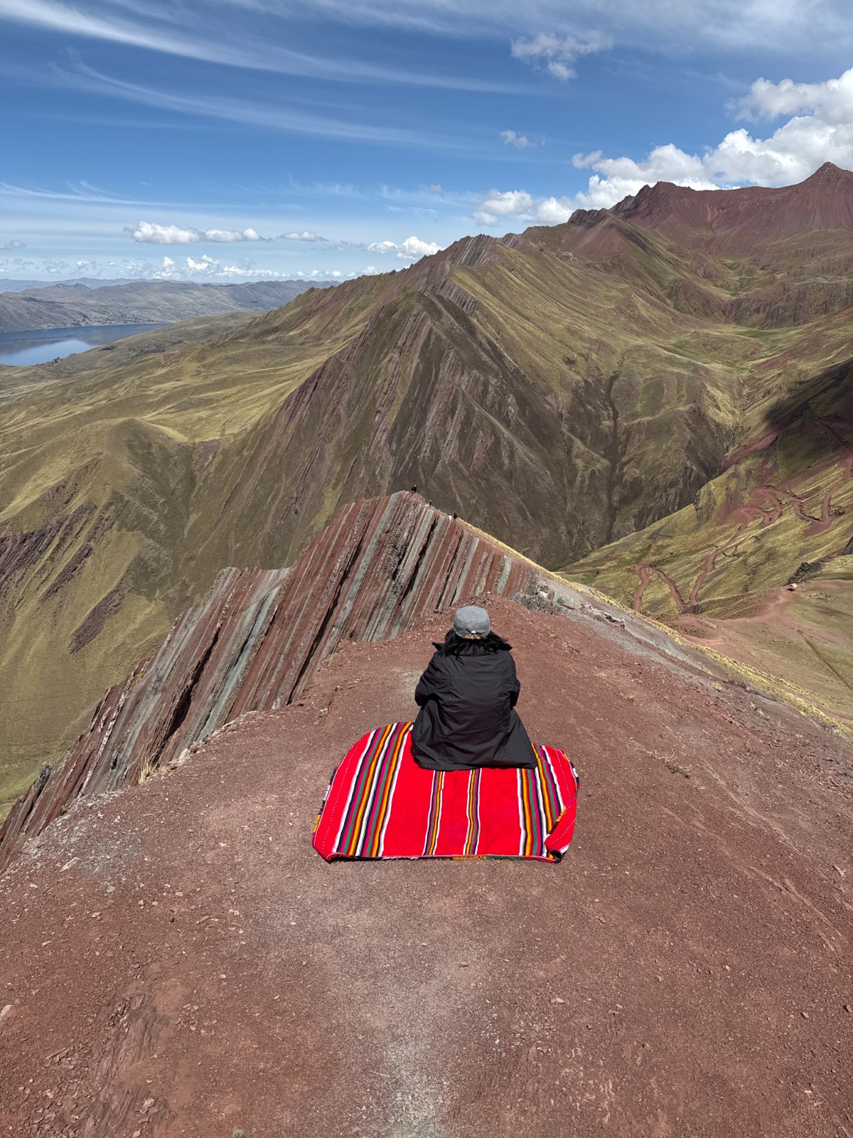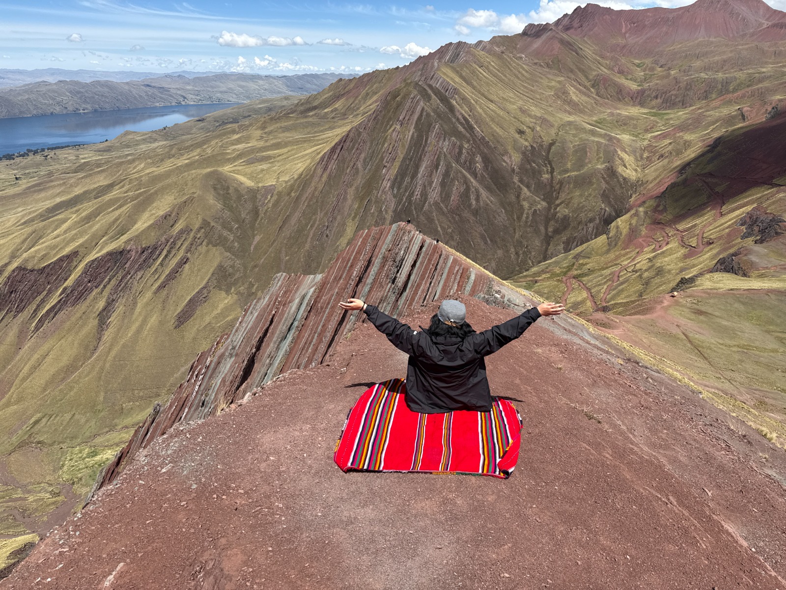 Al llegar al mirador (4700 m s. n. m.), serás recompensado con una vista espectacular de la montaña de colores de Pallaypunchu Perú, donde tonos rojos, marrones y turquesas crean un escenario natural increíble, perfecto para fotografías y conexión con la naturaleza.