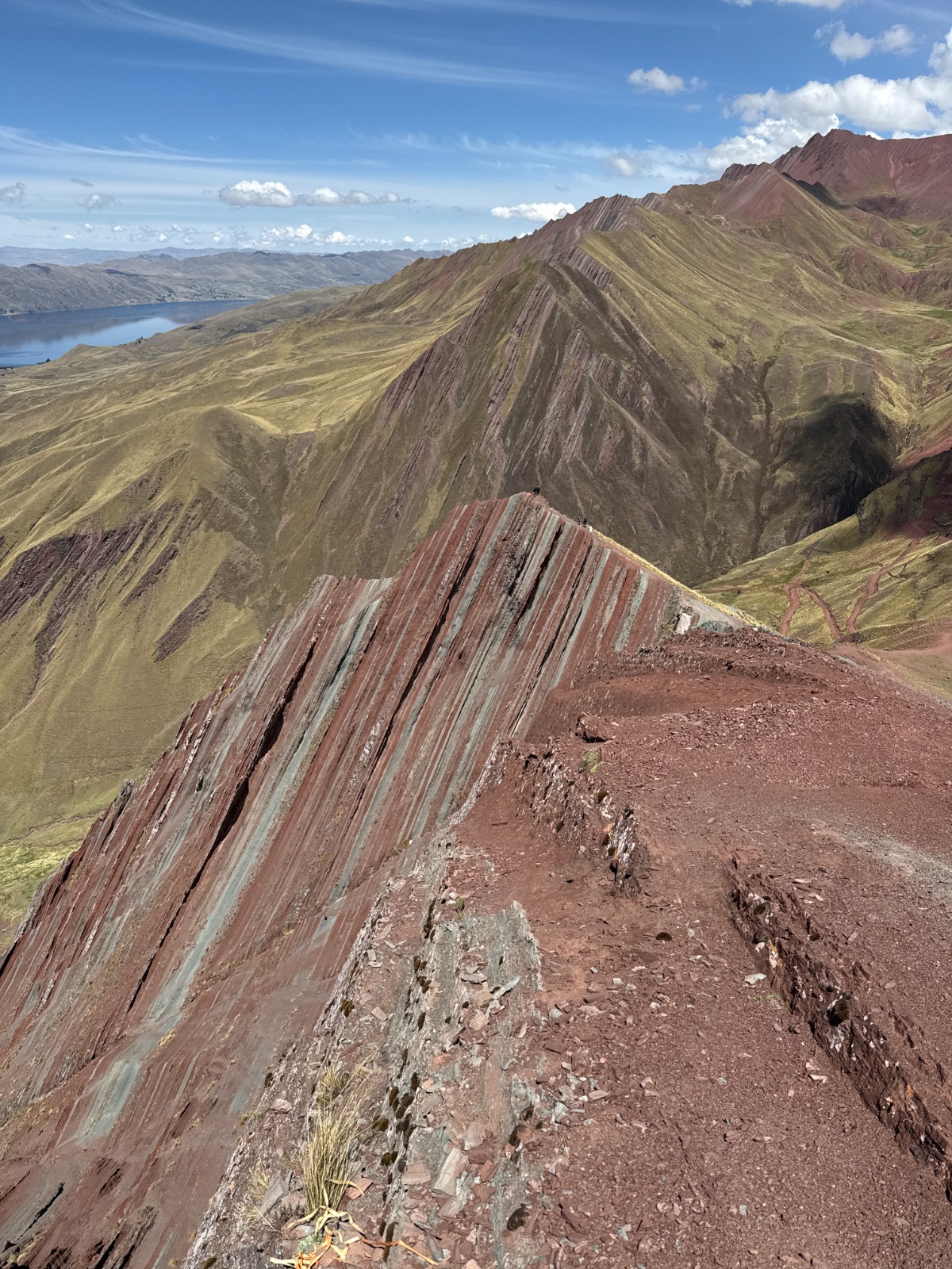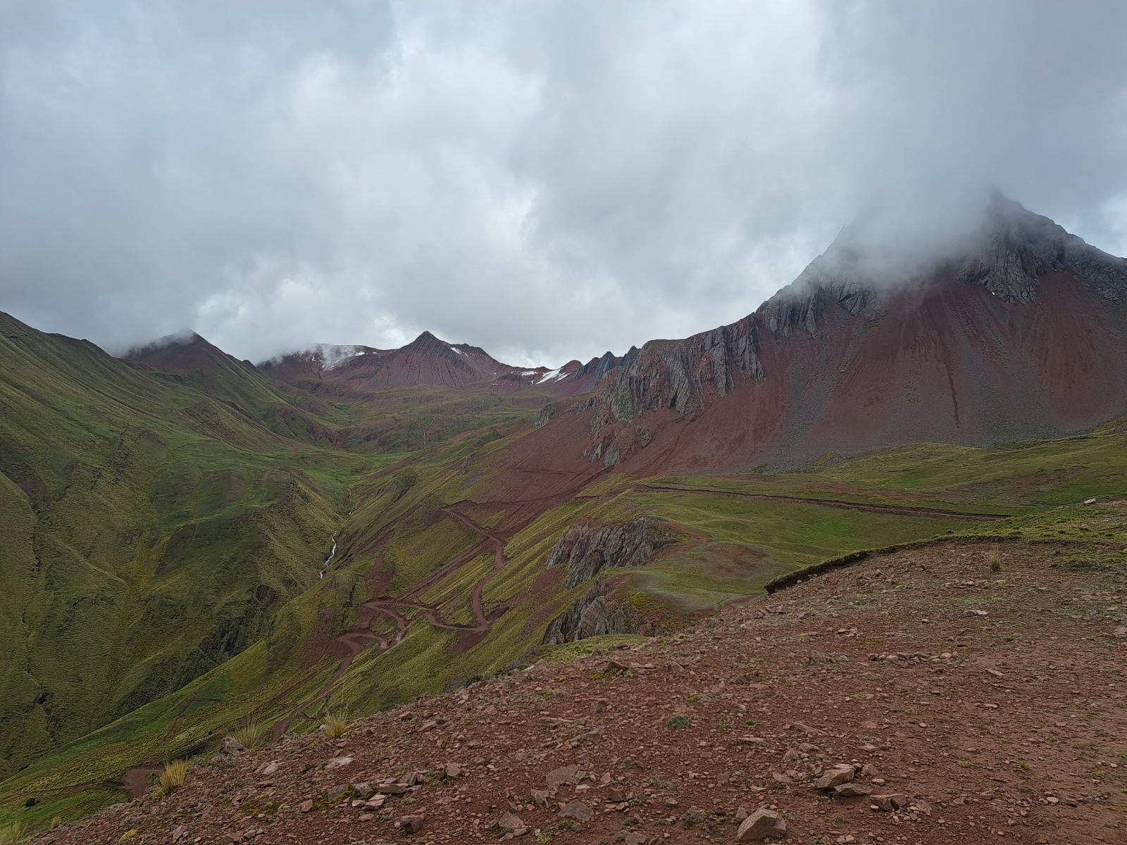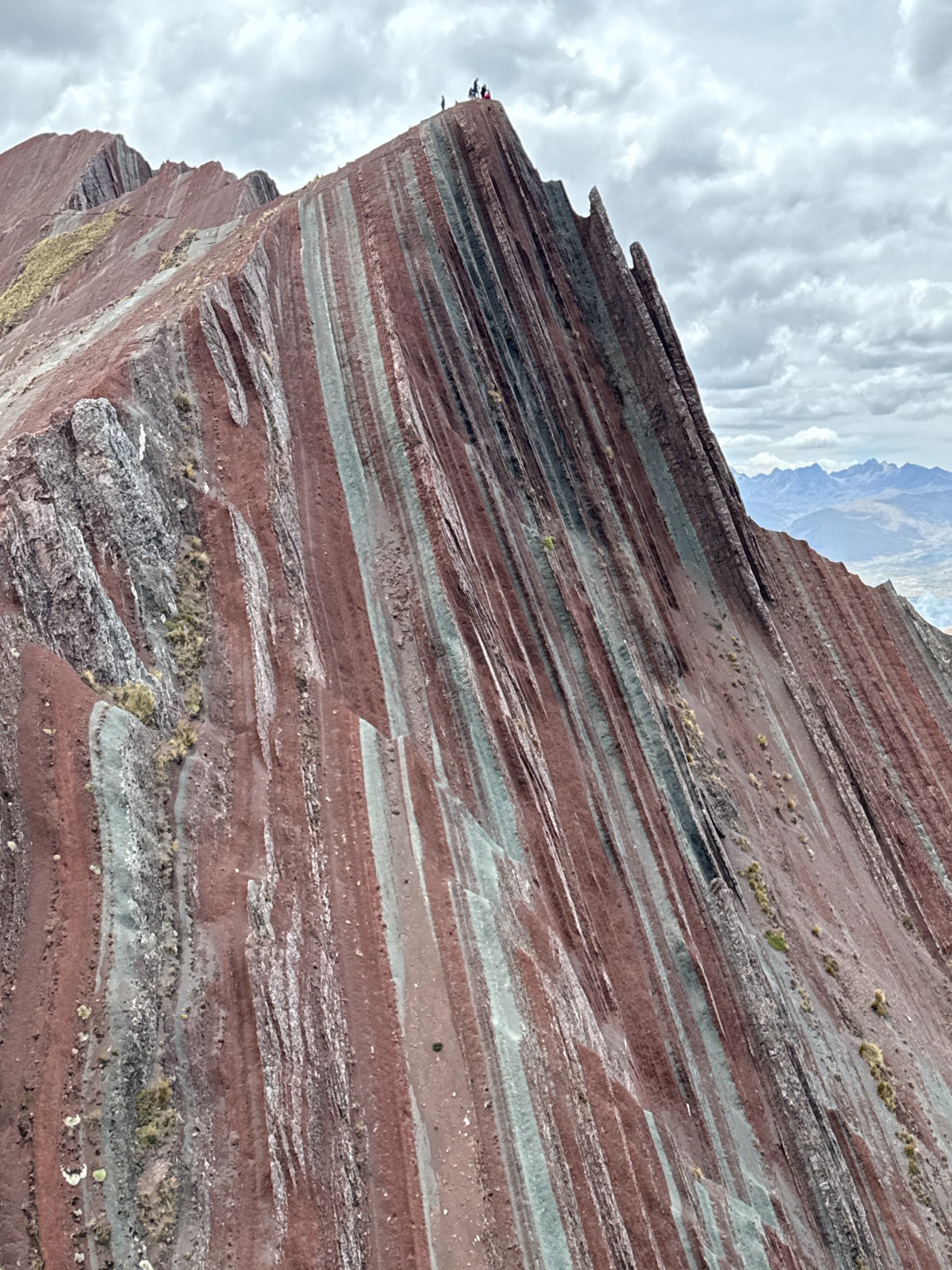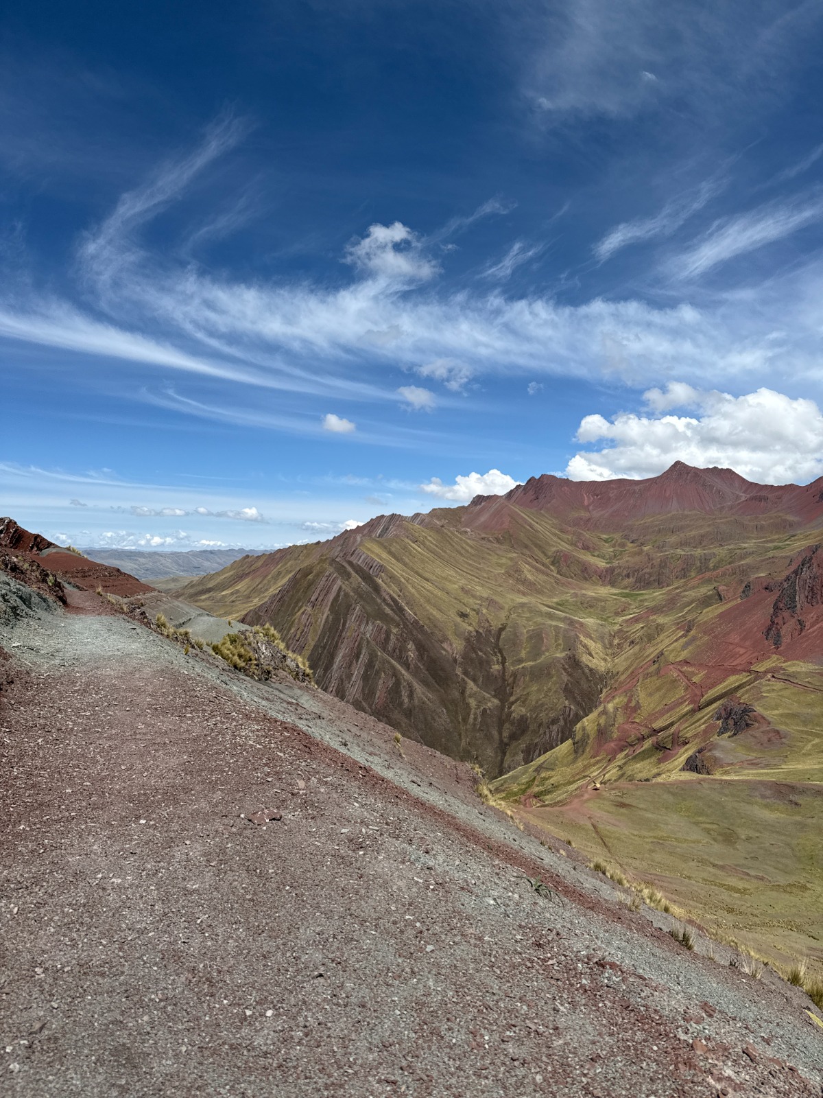 Al llegar al mirador (4700 m s. n. m.), serás recompensado con una vista espectacular de la montaña de colores de Pallaypunchu Perú, donde tonos rojos, marrones y turquesas crean un escenario natural increíble, perfecto para fotografías y conexión con la naturaleza.